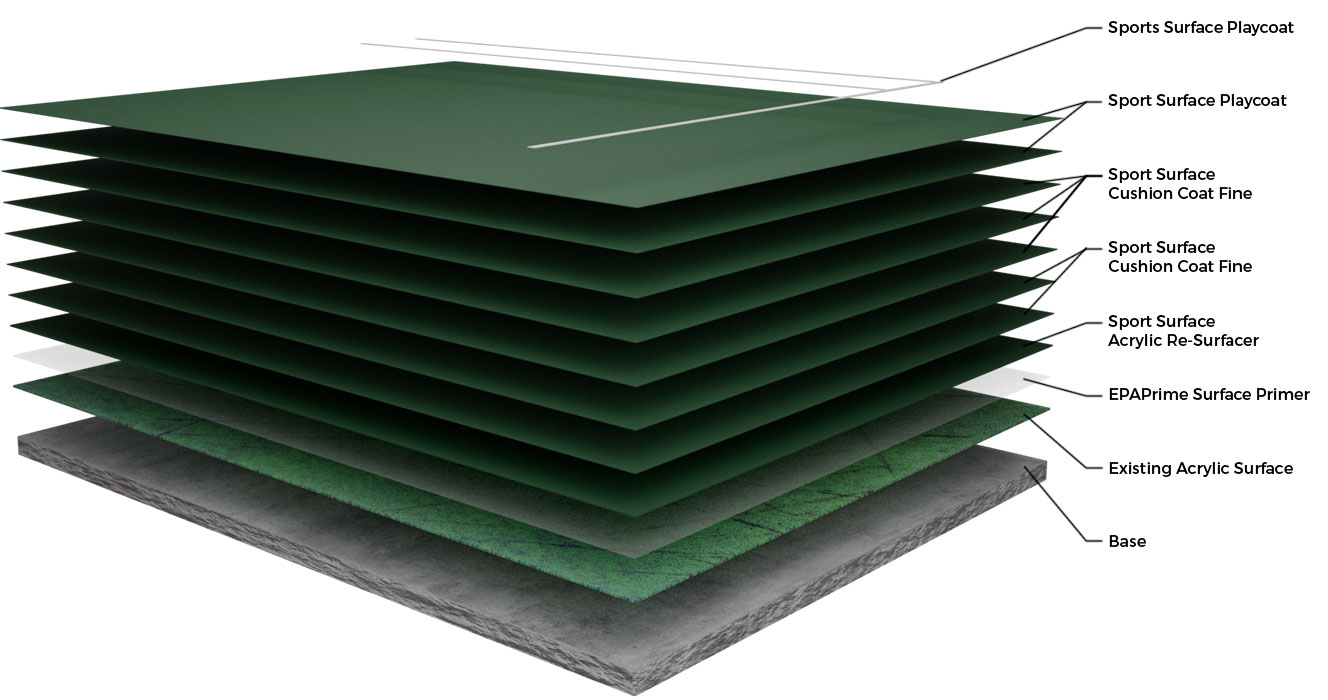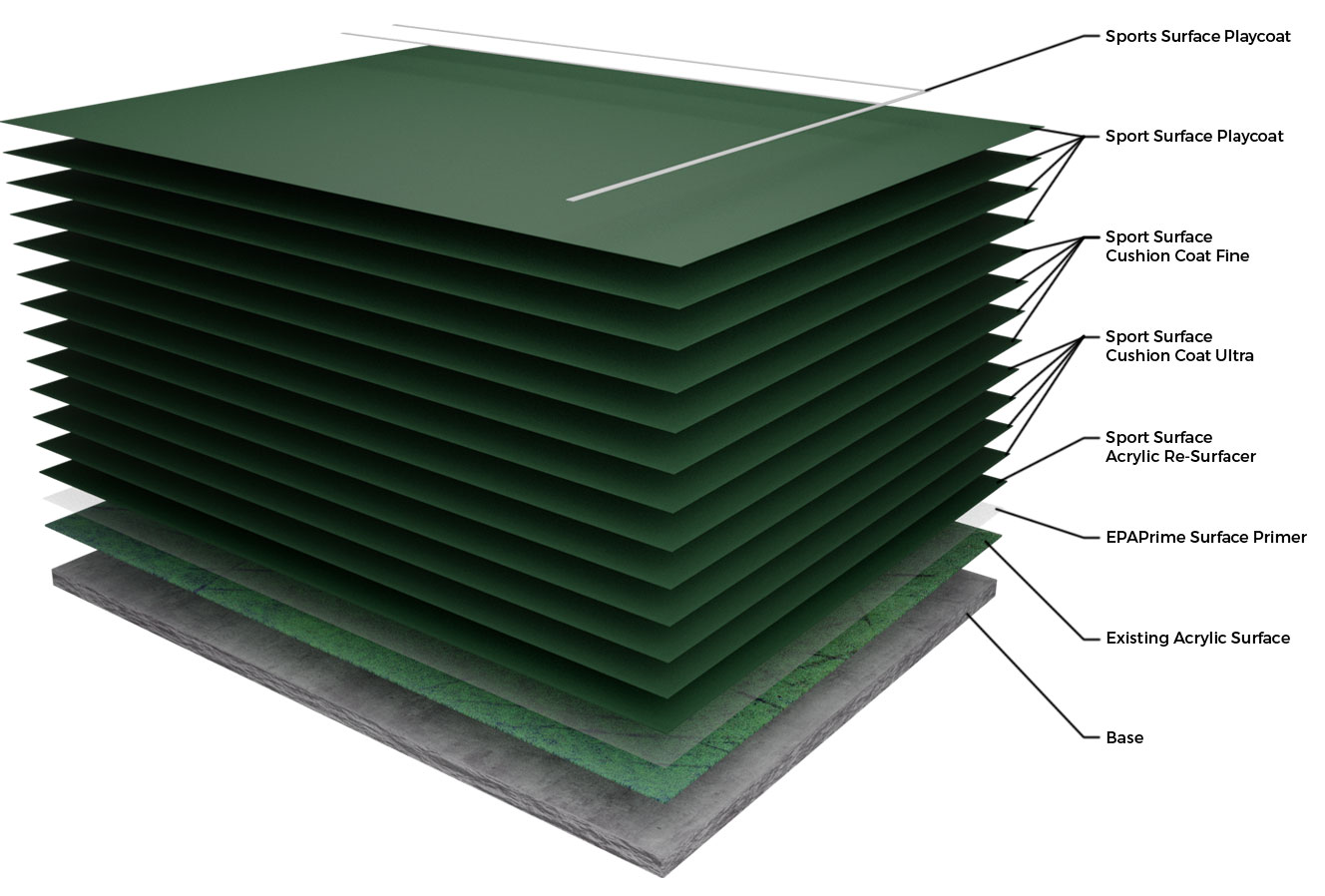 Our Standard Hard Court System is designed to deliver a durable and high-performance surface for a variety of sports. It features: